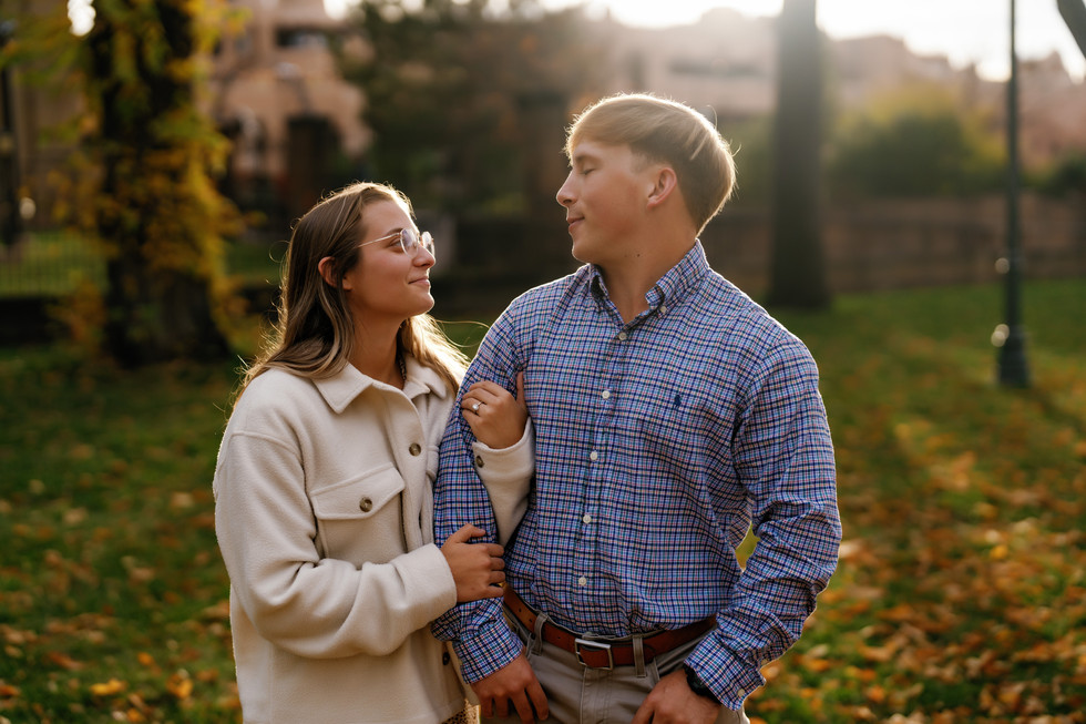 Surprise proposals are always such a joy to photograph, and this Santa Fe fall surprise proposal was no exception. The fall air and golden hues of the park created the perfect backdrop for this unforgettable moment. Evan planned every detail thoughtfully, and Devan’s reaction when she saw him down on one knee was pure happiness. The excitement and love between them were so clear, making it a moment that you couldn’t help but smile about.